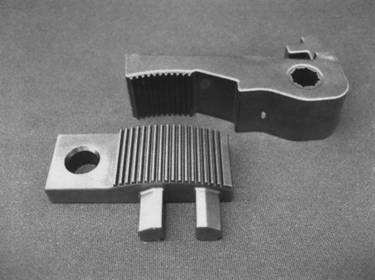 精石新材料長期的技術攻關和儲備,現已可以通過客戶提供的鋼件、鑄件制品的使用工況、受力情況將相當部分零件轉換為粉末冶金制品,從而達到為客戶降低采購成本、生產成本的目的。我們現已成功的將德國瑪雅經編機傳感鏈塊、電動執行機雙聯齒、大圓機三角等鋼件或鑄件制品轉換為粉末冶金制品,為客戶節約了15%-80%不等的采購成本,并得到客戶的廣泛認可。